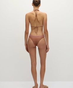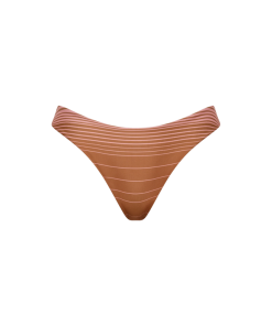 A timeless bikini bottom that sits high on the waist with a slightly curved cut. Designed in a soft pink and caramel brown stripe with a metallic-like finish, style with the matching Sete Bikini Top for your next vacation.