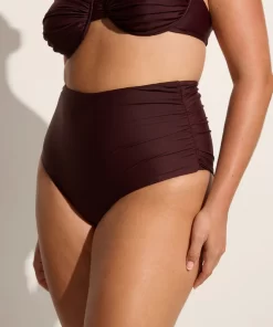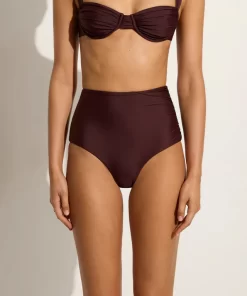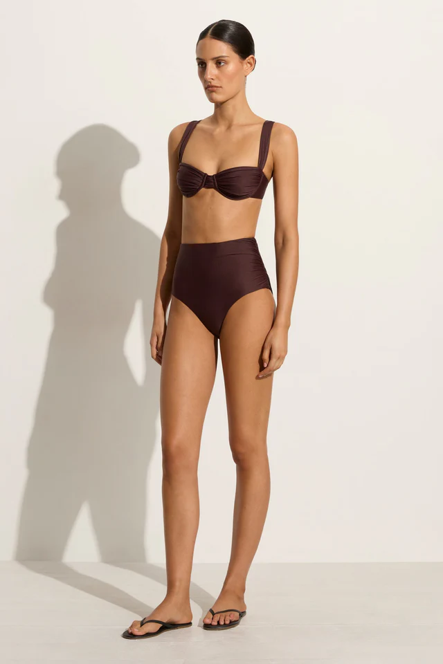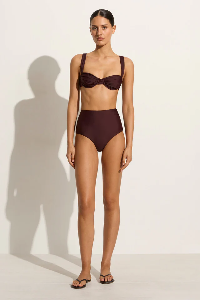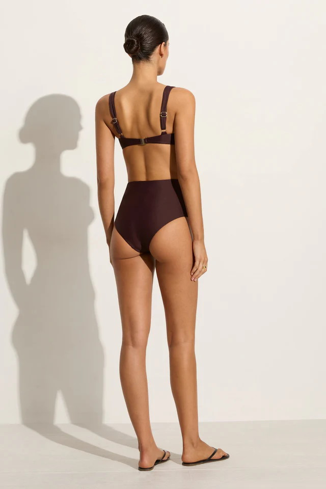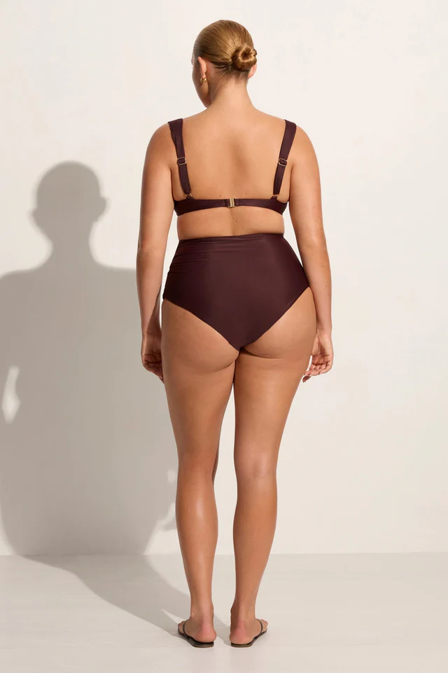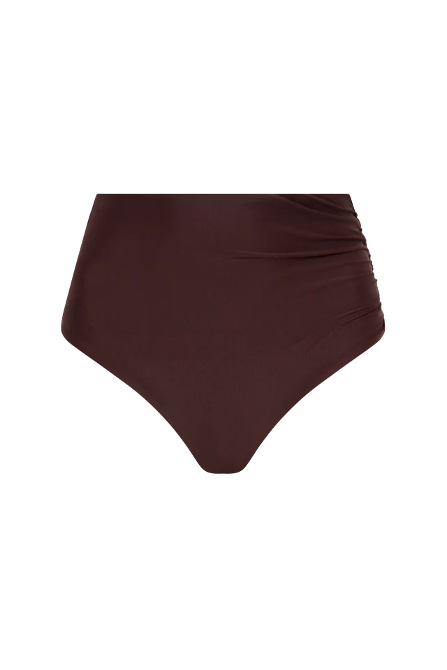 Rendered in certified recycled nylon, the Bianca Bikini Bottoms in Soil offers a retro-inspired silhouette with a high-rise waist, full coverage and asymmetric gathering through the side. Style it with the Sol Bikini Top for a staple swim set.