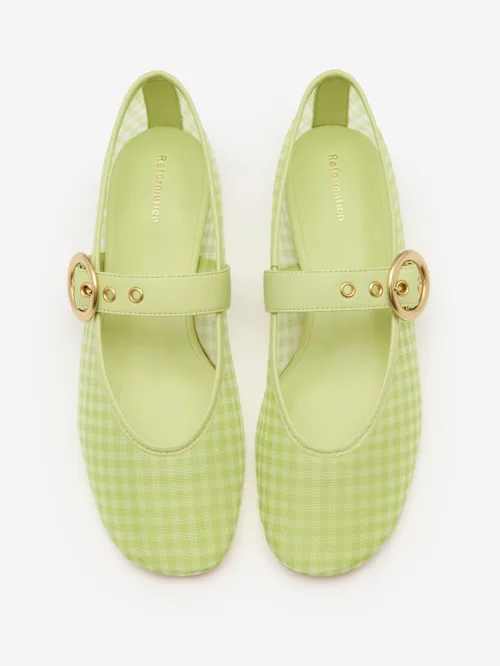 Gingham printed deadstock mesh.