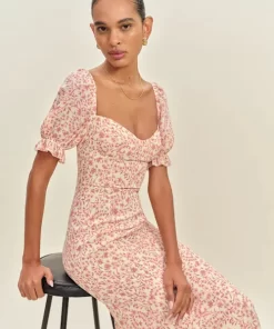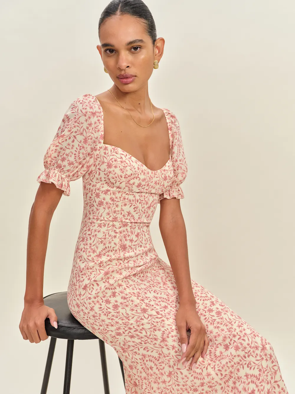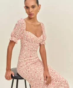 Designed to be fitted at bodice and waist with a relaxed skirt.
