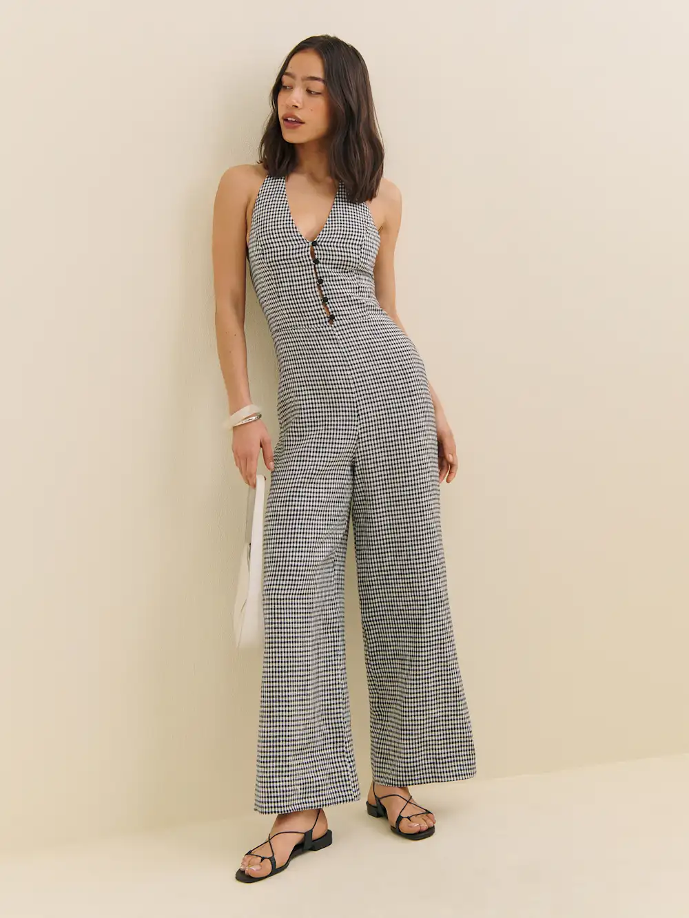 The model is wearing a size 2 and is 5’9″, 25″ waist, 36.5″ hips, 34″ bust.