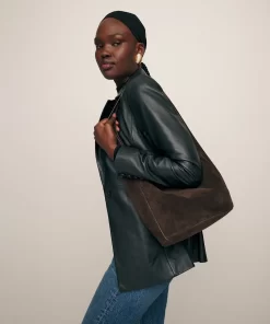 a slouchy bucket bag with a magnetic closure