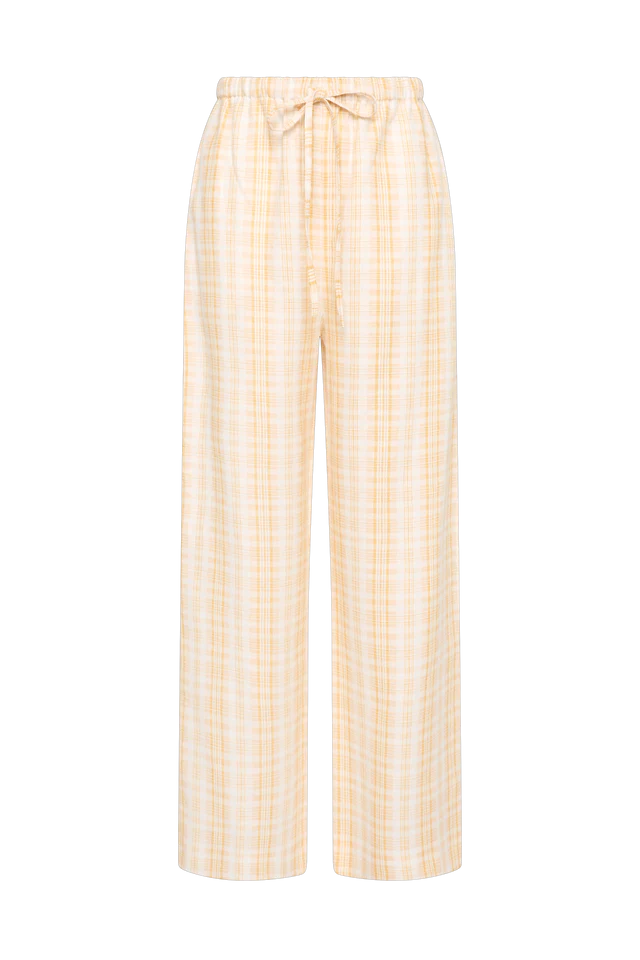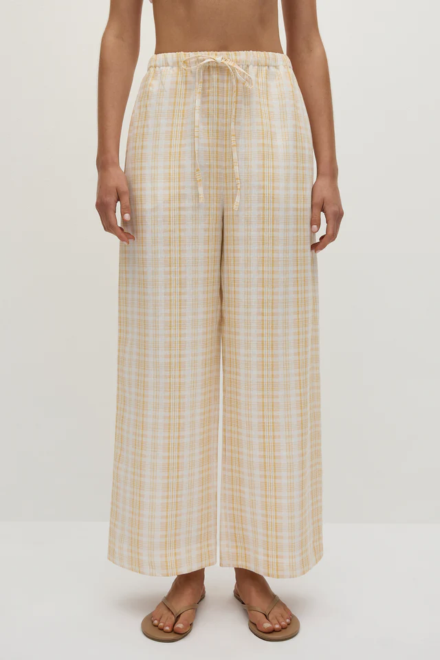 A signature FAITHFULL silhouette, reimagined with new elevated details and designed from a 100% European Flax® linen fabrication. They are a relaxed pant sitting mid-rise on the waist with an elasticated drawstring and side pockets, falling into a wide leg. Offered in a nostalgic ginghim print with creamy baby yellow tones, style with the Iris Top for a coordinated summer set.This style is true to size. The elasticated drawstring waist allows for additional stretch.