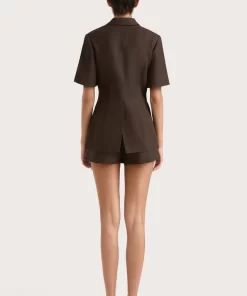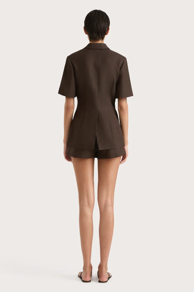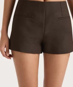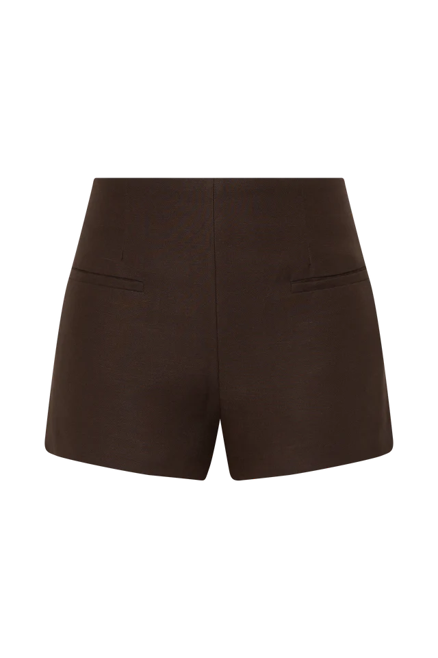 A mid-rise mini short, designed from an ultra soft blend of viscose, rayon and a signature 100% European Flax® linen fabrication in a deep chocolate brown colourway, it is fully lined so will hold shape. Smooth through the front and soft tailored, they are a straight yet slightly relaxed silhouette with single welt pockets. Style with the Enna Short Sleeve Blazer for a seasonal approach to suiting. This style is true to size. Please note there is no elastic woven into the fabric so it does not offer any additional stretch.
