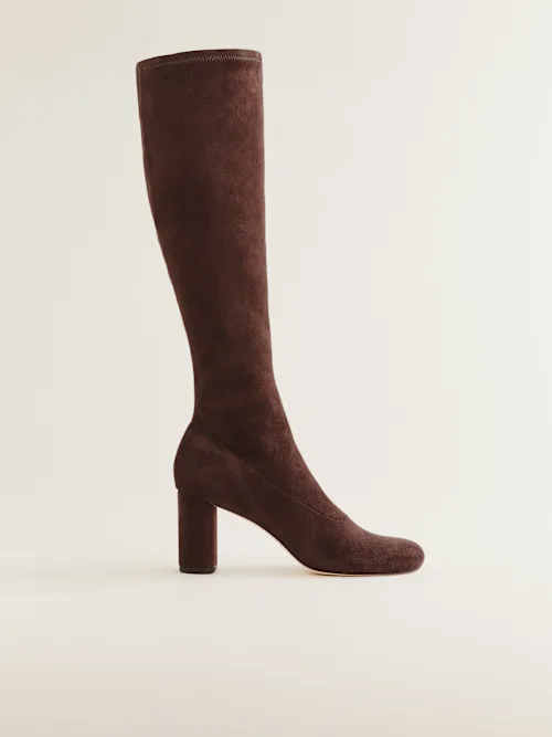 Silky Stretch Suede, light weight and fits like a glove. Spot clean.