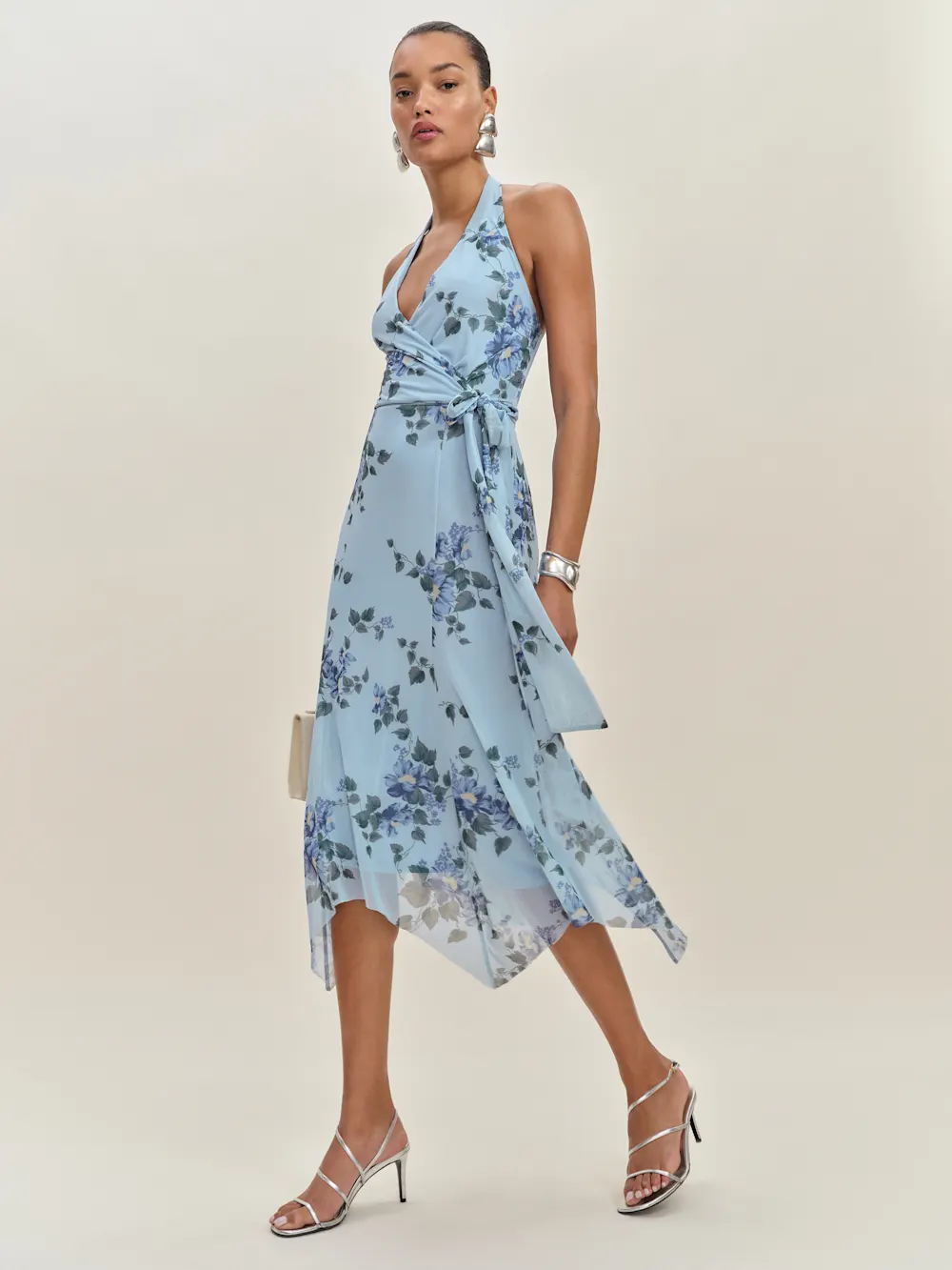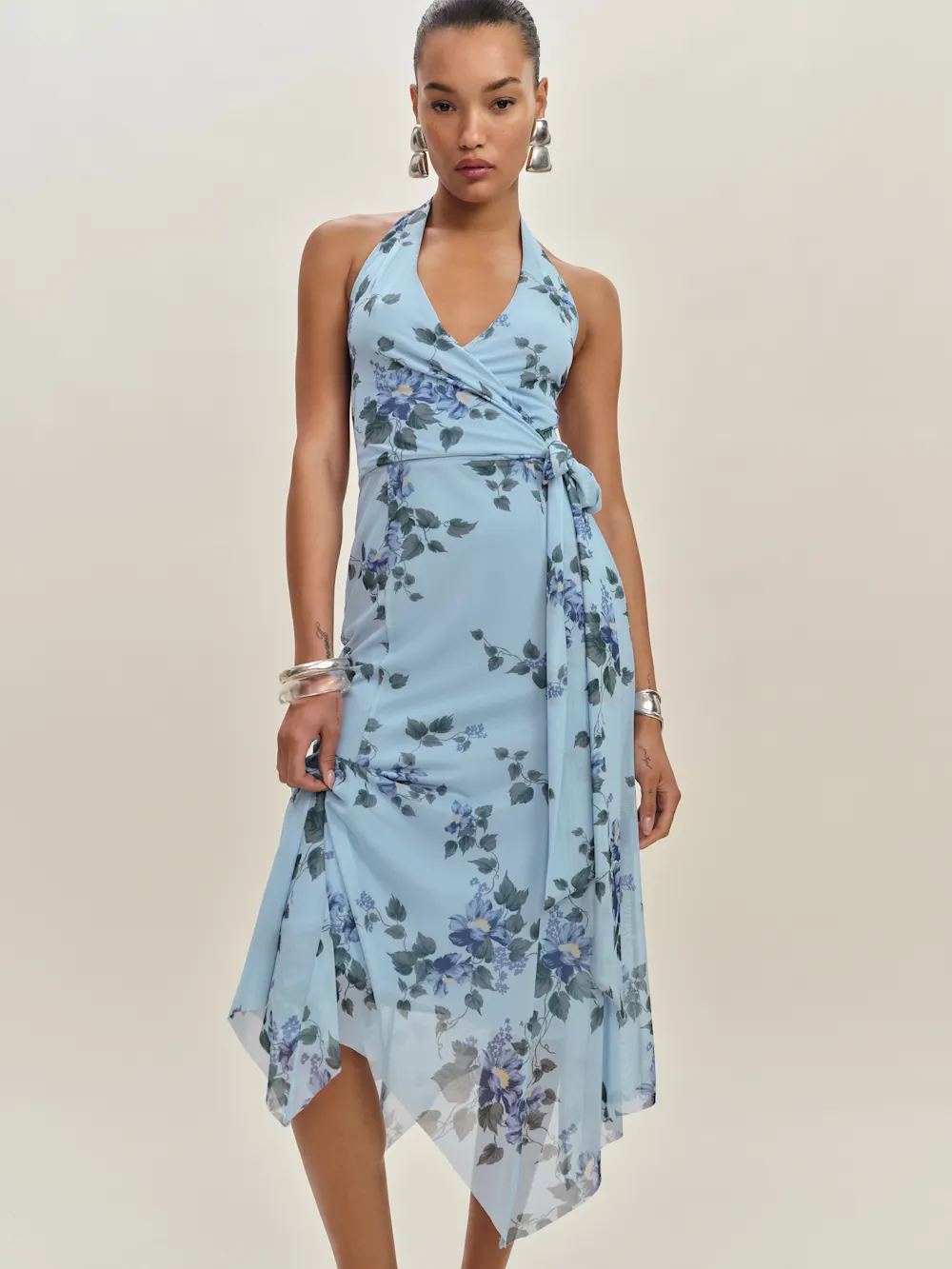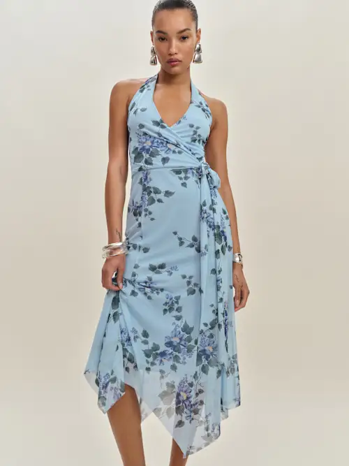 The model is wearing a size 0 and is 5’10”, 23″ waist, 34″ hips, 32″ bust.