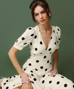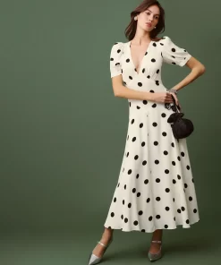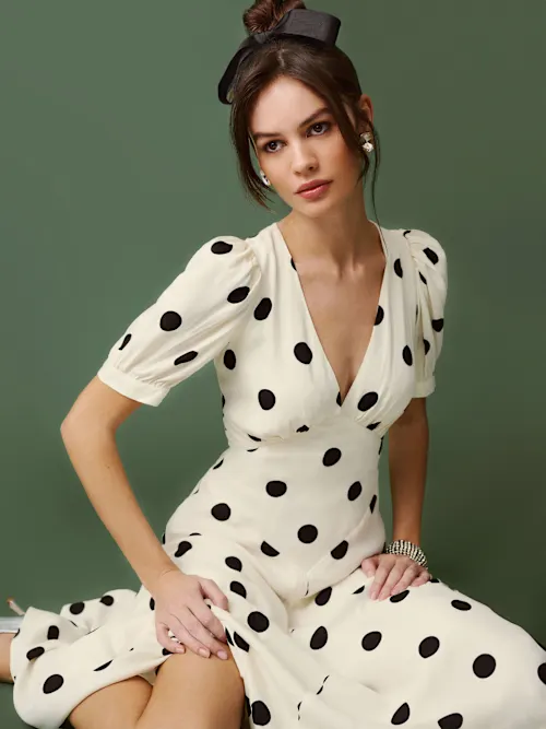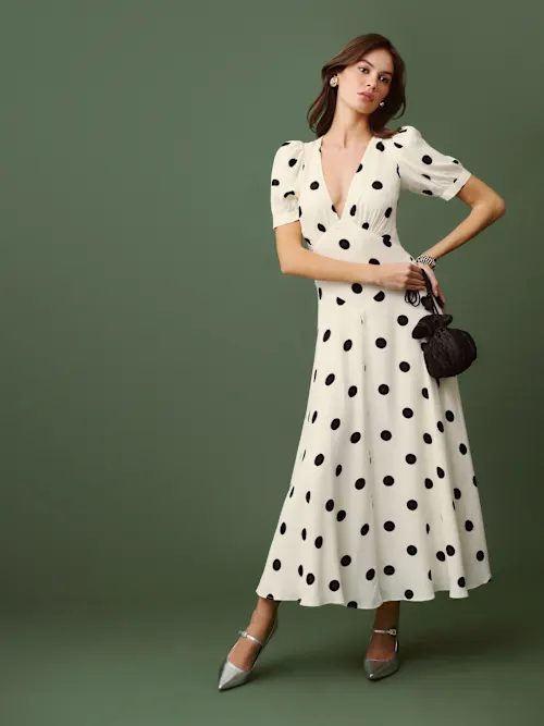 Designed to be fitted at bodice and waist with a relaxed skirt.