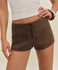 The model is wearing a size 0 and has a 24″ waist, 34.5″ hips.