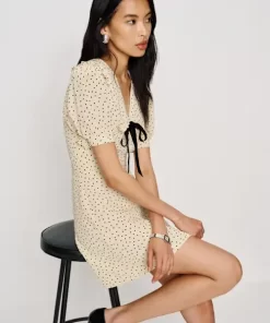 The model is wearing a size 0 and is 5’10”, 24″ waist, 34.5″ hips, 31″ bust.