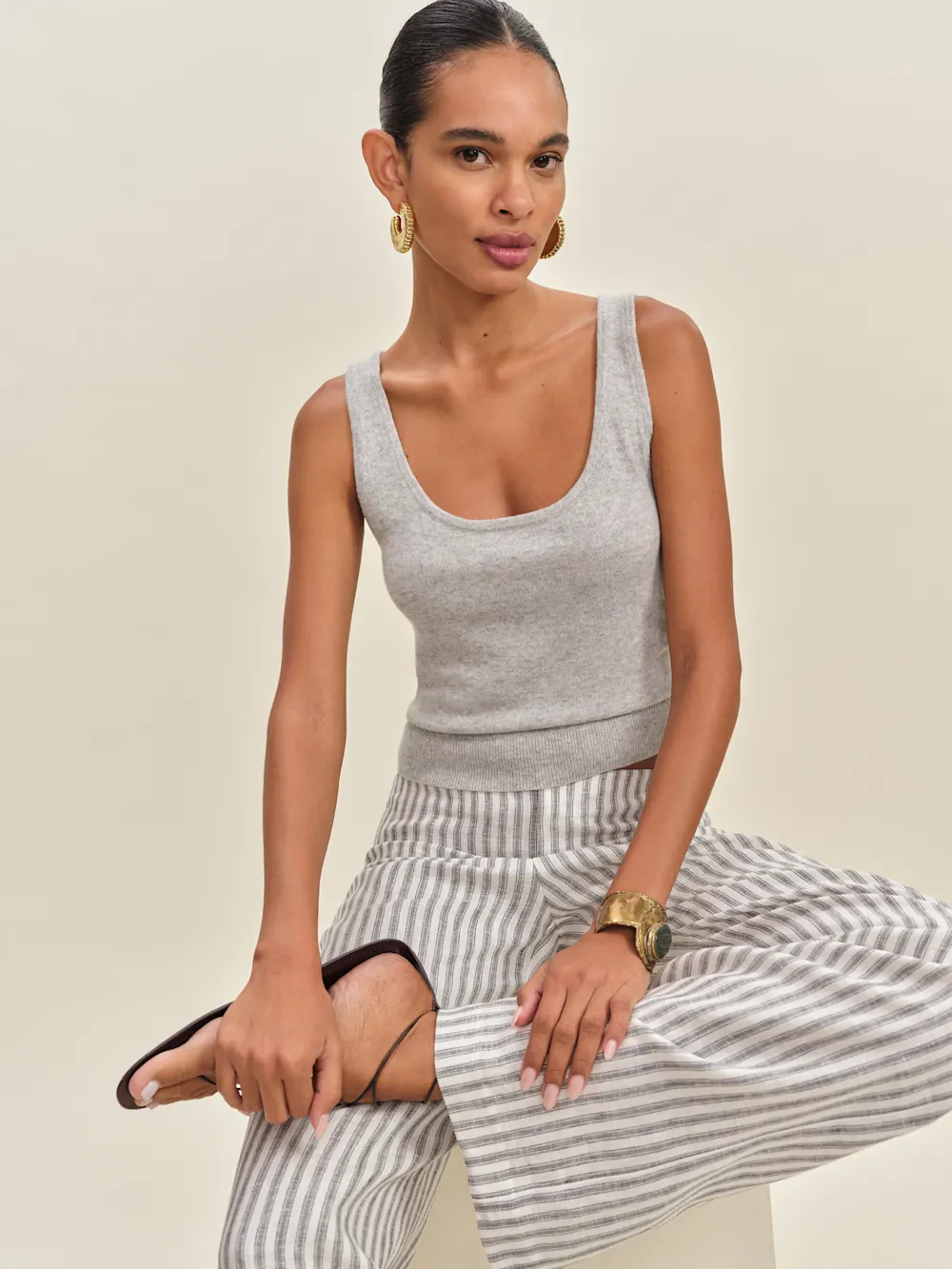 This is a fine-gauge recycled cashmere blend sweater knit – 95% Recycled Cashmere, 5% Cashmere. Hand wash + dry flat.
