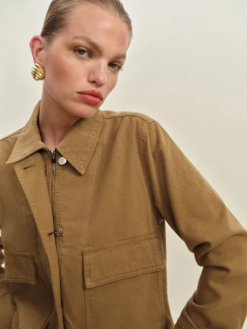 This is a non-stretch twill fabric made of 100% regeneratively grown cotton. Wash cold + line dry.