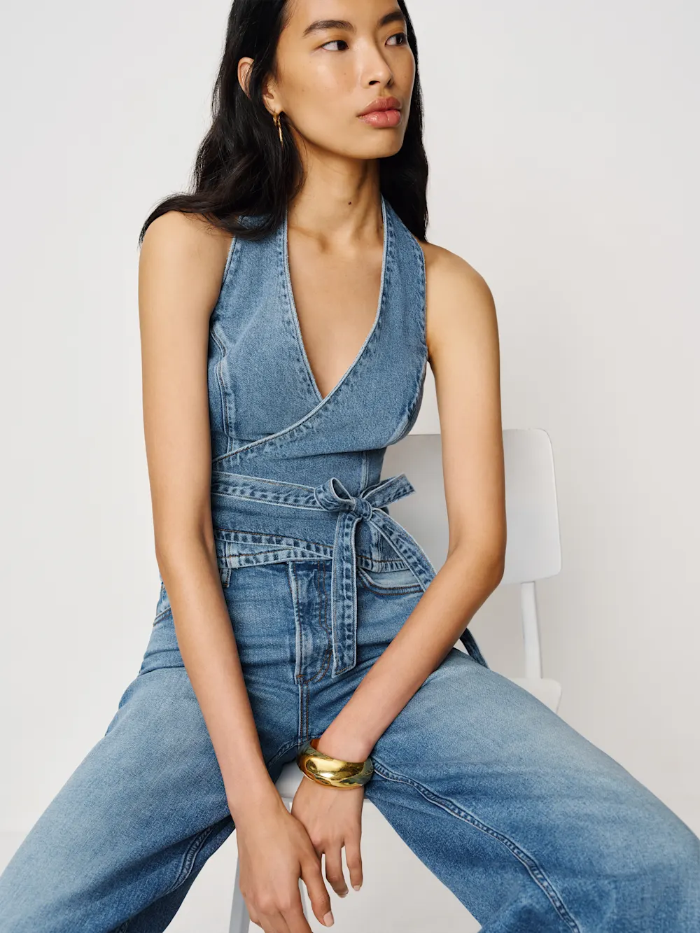 This is a non-stretch denim fabric made with 80% Organically Grown Cotton and 20% Recycled Cotton. Wash cold + line dry.