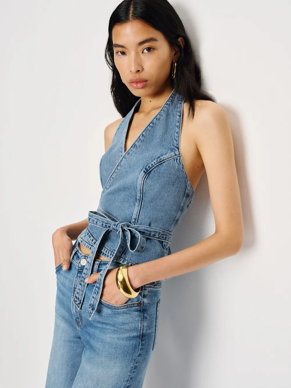 The model is wearing a size XS and has a 24″ waist, 34.5″ hips.