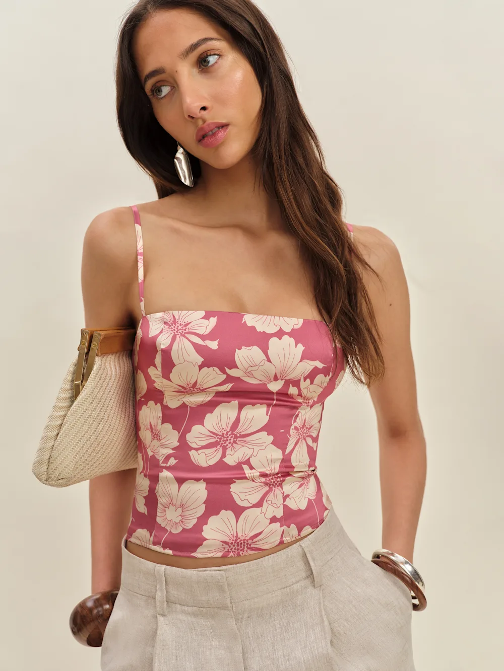 The model is wearing a size 2 and is 5’10”, 23″ waist, 34″ hips, 31″ bust.