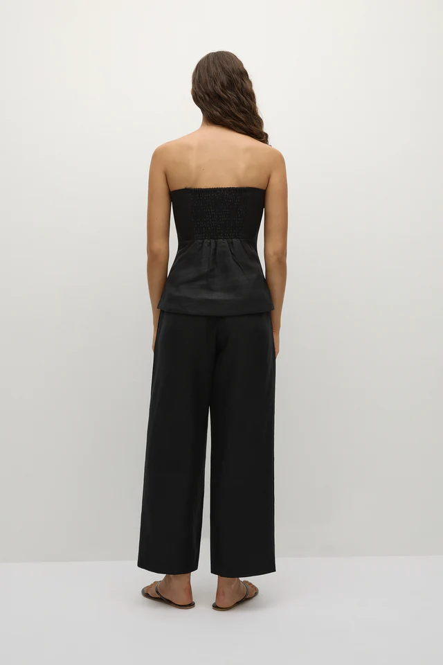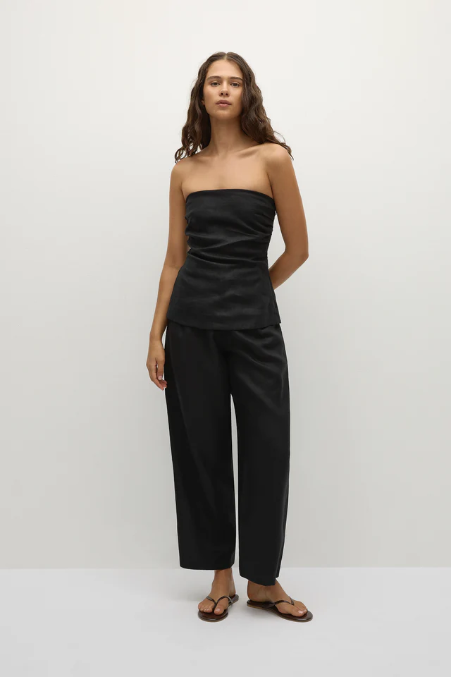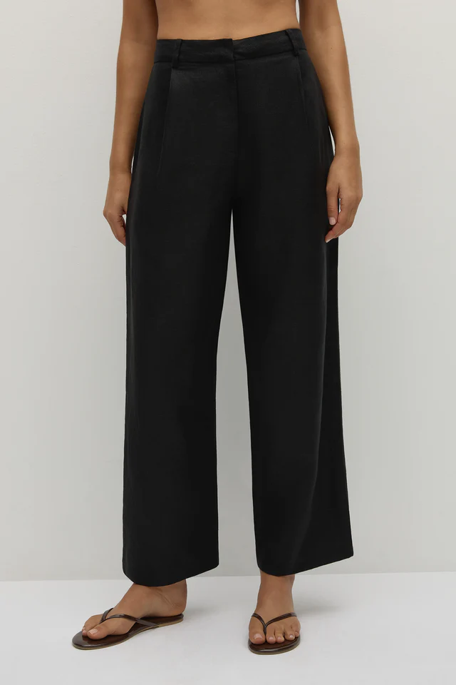 A signature FAITHFULL silhouette, reimagined with new elevated details and designed from a 100% European Flax® linen fabrication. They are a high-waisted trouser, softly tailored with structure through the waist, belt loops and side pockets. A straight silhouette in a classic black colourway, they also feature a pleat through the front leg. Designed to sit high on the body, style with a cropped top like the Alexa Top for everyday vacation wear. This style is true to size. Please note there is no elastic woven into the fabric so it does not offer any additional stretch.