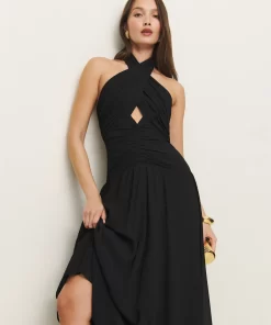The model is wearing a size 0 and is 5’9″, 24″ waist, 34″ hips, 31″ bust.